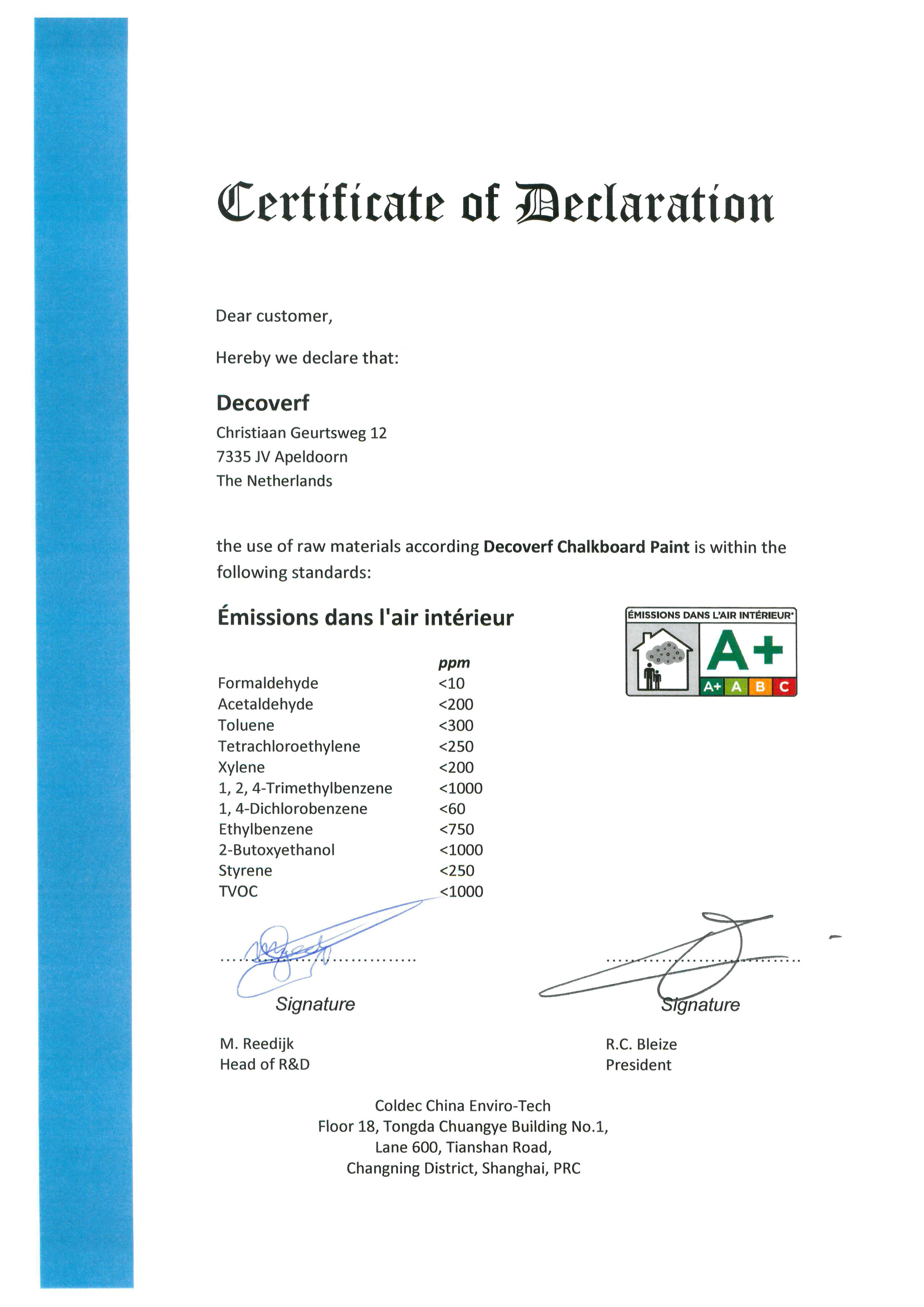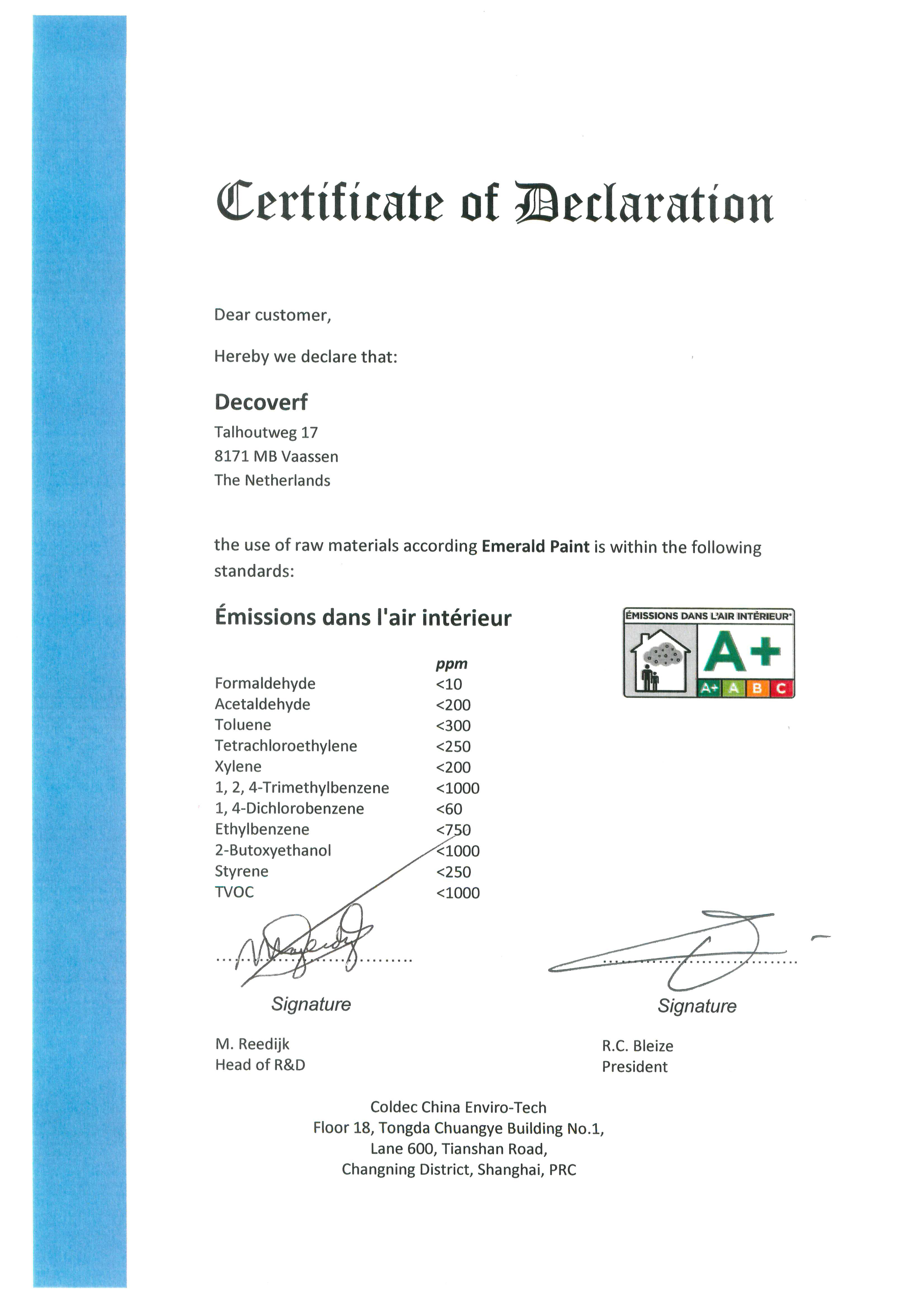 水性木器漆法国A+环保认证